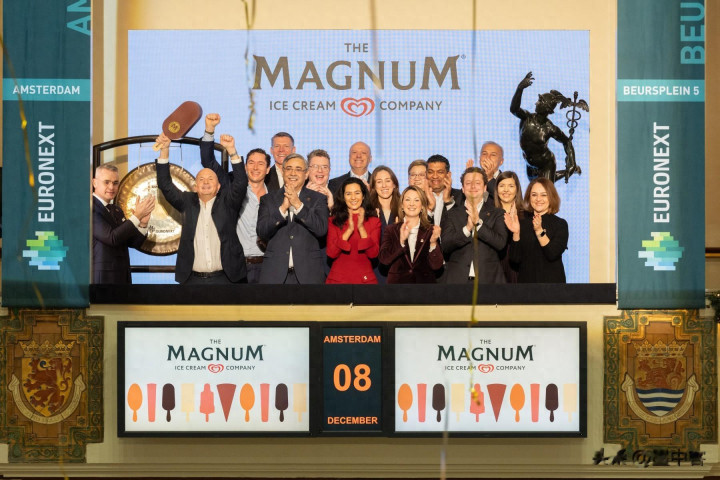 12 月 8 日,梦龙冰淇淋公司在阿姆斯特丹、伦敦、纽约三地同步上市,上市当日市值就达 78 亿欧元,约合人民币 642 亿元。